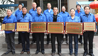 公司領(lǐng)導(dǎo)與獲獎的先進班組、先進集體合影